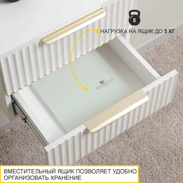 • Тумба оснащена вместительными выдвижными ящиками, что позволяет удобно организовать хранение важных предметов.