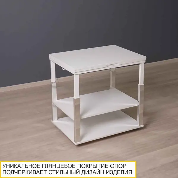 • Гладкая хромированная поверхность опор сделает любой интерьер более современным и элегантным. Данное покрытие не мутнеет и не желтеет с течением времени при эксплуатации.