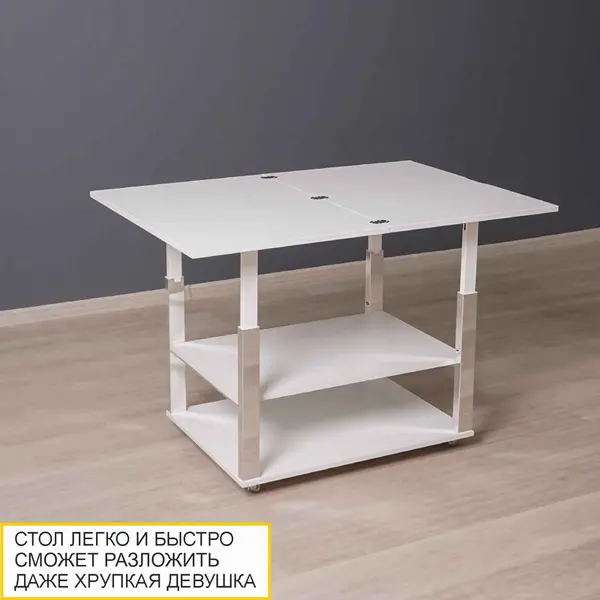 • Благодаря удобному механизму трансформации стол легко и быстро сможет разложить даже хрупкая девушка. Для того чтобы процесс трансформации был ещё удобнее и проще, мы рекомендуем использовать замок фиксации столешницы и удобную ручку для раскладывания.