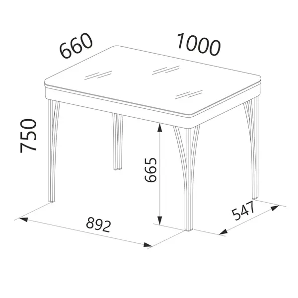 • Размер обеденного стола (ШхГхВ) – 66х100х75 см.