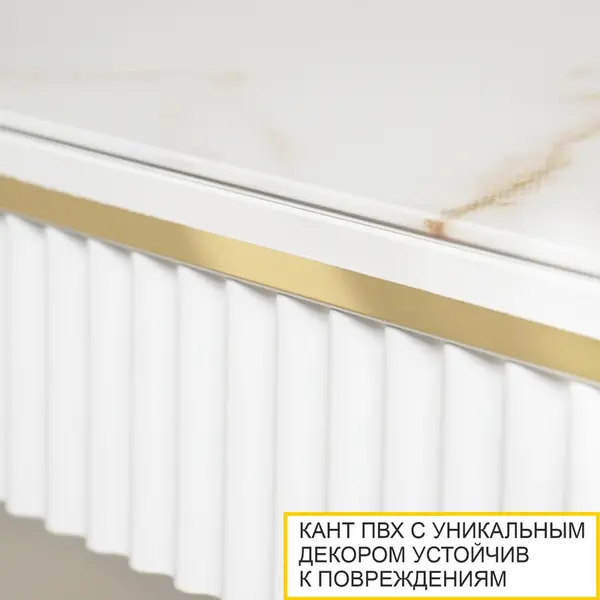 • Кант ПВХ с уникальным декором в виде тонких золотых линий добавляет столу кухонному стеклянному утонченности, а также защищает края столешницы от сколов, царапин и других механических повреждений, продлевая срок службы столы.