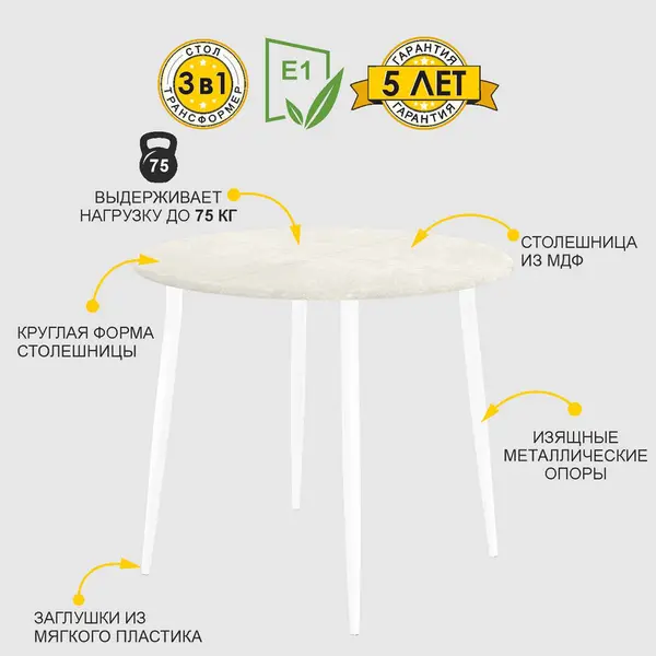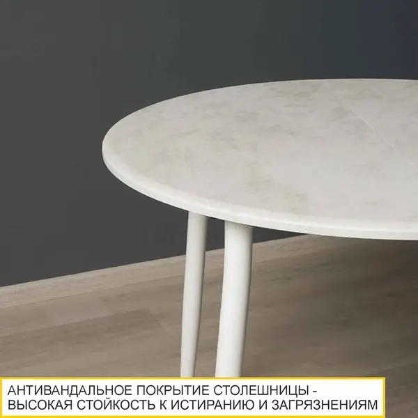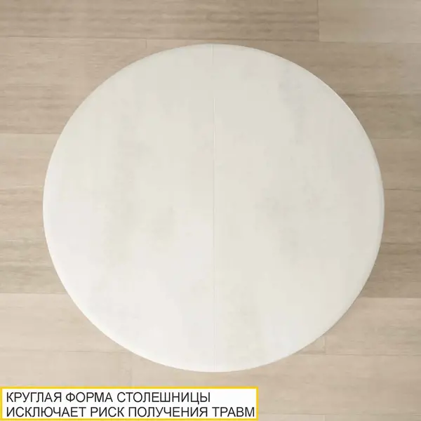 • Круглая форма столешницы исключает риск получения травм, безопасна для маленьких членов семьи. Вам не придется защищать углы специальными накладками для острых углов.