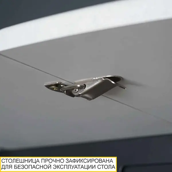 • Замок для фиксации столешницы придает жесткость конструкции как в собранном, так и в разложенном виде. Позволяет надежно зафиксировать столешницу во время эксплуатации стола.