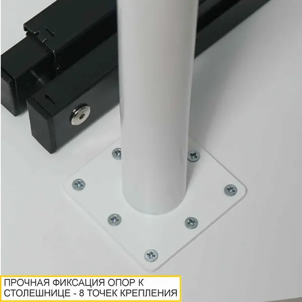 • Опоры выполнены из прочной стали толщиной 1,5 мм – благодаря такому качеству материала опора выдерживает повышенную нагрузку на изгиб. Многие производители экономят и используют более тонкую сталь от 1 до 1,2 мм. Прочная фиксация опор к столешнице – 8 точек крепления.