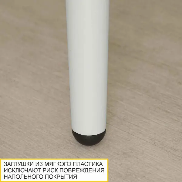 • Заглушки из мягкого пластика исключают риск повреждения напольного покрытия и защищают пол от царапин. Качественный пластик предотвращает ломкость и обеспечивает плотную посадку заглушек в опору стола.