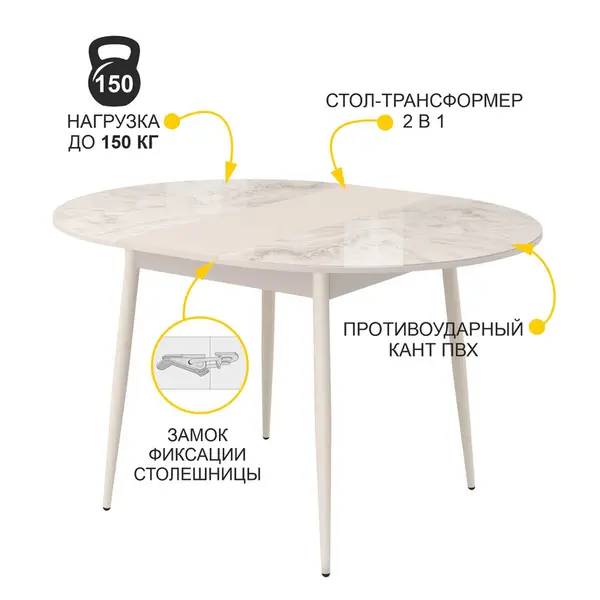 • Благодаря удобному механизму трансформации этот стол раскладывается легко и без усилий — справится любой.
