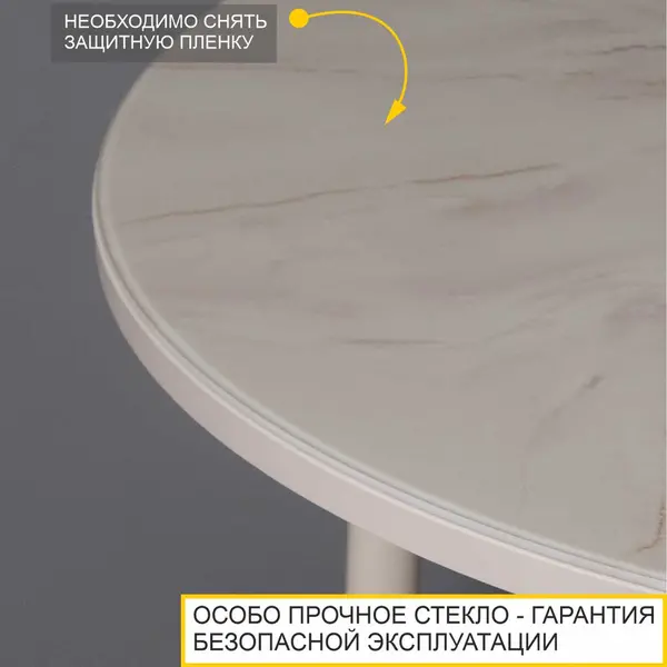 • Круглая форма столешницы со стеклом – оригинальное решение, которое пользуется большой популярностью, визуально расширяет пространство и отлично вписывается в любой дизайн интерьера.