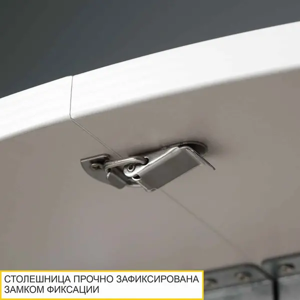 • Замок для фиксации столешницы придает жесткость конструкции как в собранном, так и в разложенном виде. Позволяет надежно зафиксировать столешницу во время эксплуатации обеденного стола.