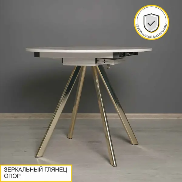 • Оригинальные золотые опоры подчеркивают яркий и современный образ раздвижного стола и придают ему элегантный и легкий внешний вид.