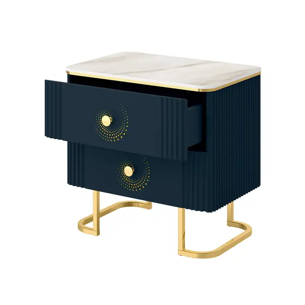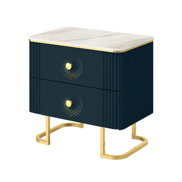 Прикроватная тумба Аккорд 15 (03) Мрамор Империал бежевый/Индиго/Золото