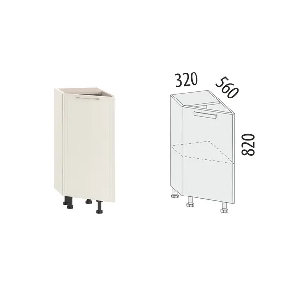 • Высота напольных шкафов составляет 820 мм (без столешницы), что обеспечивает комфортный процесс приготовления пищи.
