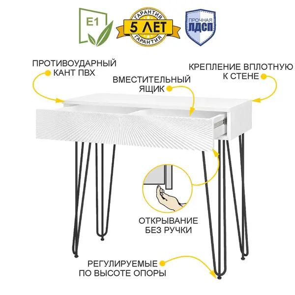 • Мы позаботились, чтобы сборка консольного столика была максимально простой, и создали понятную инструкцию, которая идет в комплекте.