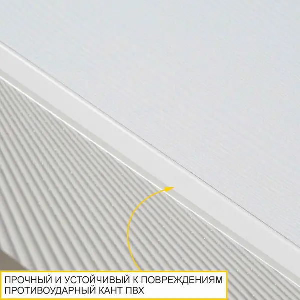 • Противоударный кант ПВХ толщиной 0,4 мм и 2 мм защищает края косметического столика от сколов и влаги, увеличивает срок эксплуатации изделия и сохраняет его внешний вид на долгие годы.