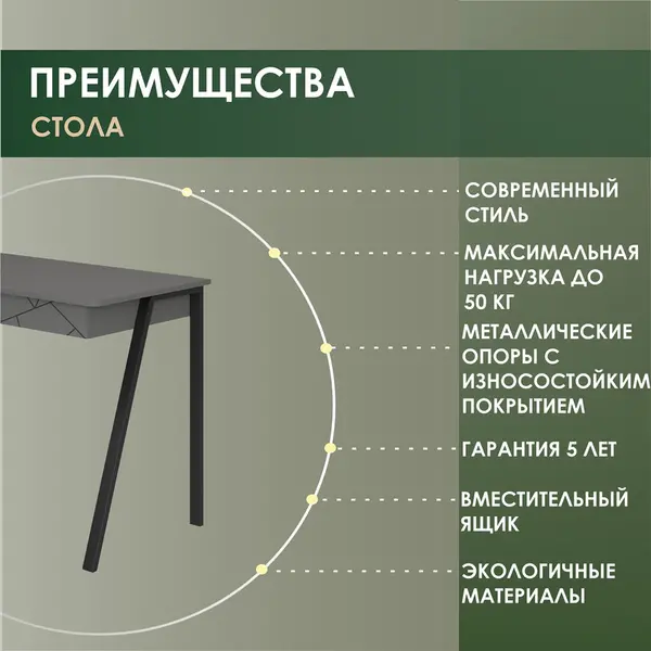 • Стол письменный с ящиками выдерживает максимальную распределенную нагрузку до 50 кг.