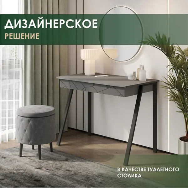 Стол выполнен в базовом сером цвете, он прекрасно сочетается с различными оттенками и может быть с успехом применен в разнообразных стилевых решениях. Столик отлично подойдет к интерьеру в стиле лофт и подчеркнет его функциональность и практичность.