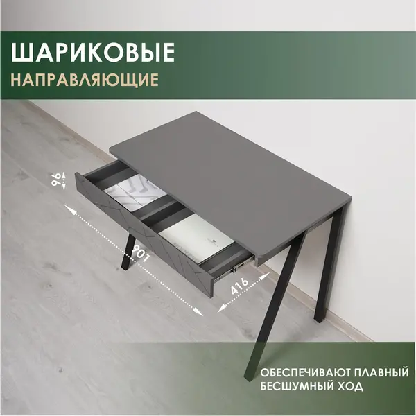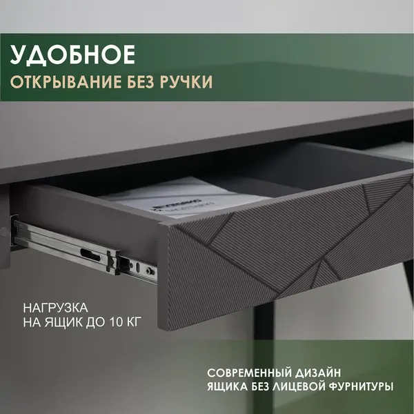 • Ящик стола разработан без лицевой фурнитуры. Такой дизайн соответствует не только современным интерьерам, но также стилю лофт.
