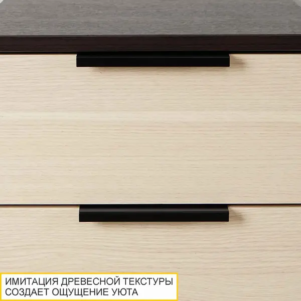 Тумба с контрастным сочетанием светлых и темных древесных оттенков. Универсальное цветовое решение: отлично смотрится в интерьерах любой цветовой гаммы.