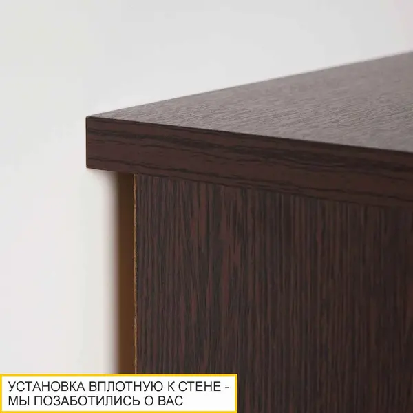 • Свес крышки тумбы позволяет установить ее вплотную к стене даже с плинтусом. Зазор между стеной и тумбой рассчитан таким образом, чтобы было удобно располагать различные провода от техники.