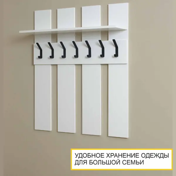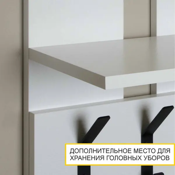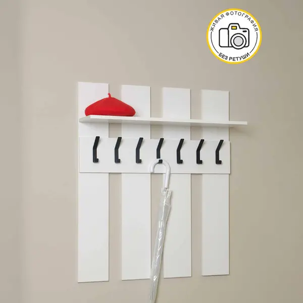 • Вешалка настенная в прихожую оснащена полкой, что обеспечивает дополнительное место для хранения головных уборов и аксессуаров.