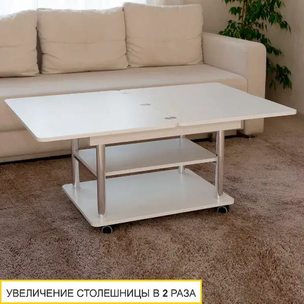 Журнальный стол-трансформер «Рим 10.2 Белый шпон/Хром» линейки товаров от «Venerdi»