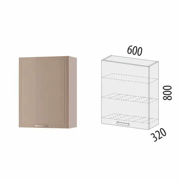 • Мягкий кофейный оттенок «Мокко» создает атмосферу спокойствия и уюта. Глянцевая поверхность фасадов с оригинальной рамкой поддерживает современный стиль.