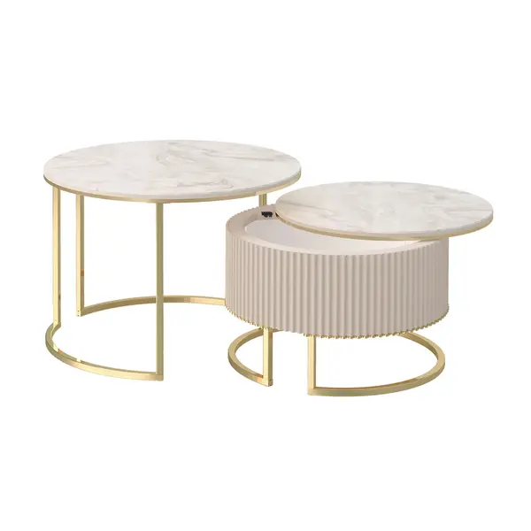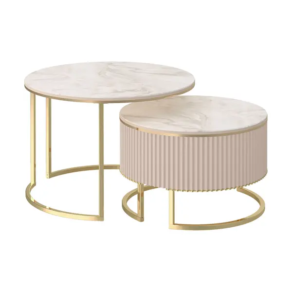 Комплект круглых журнальных столов Рим 38 (02) Мрамор латте/Золото