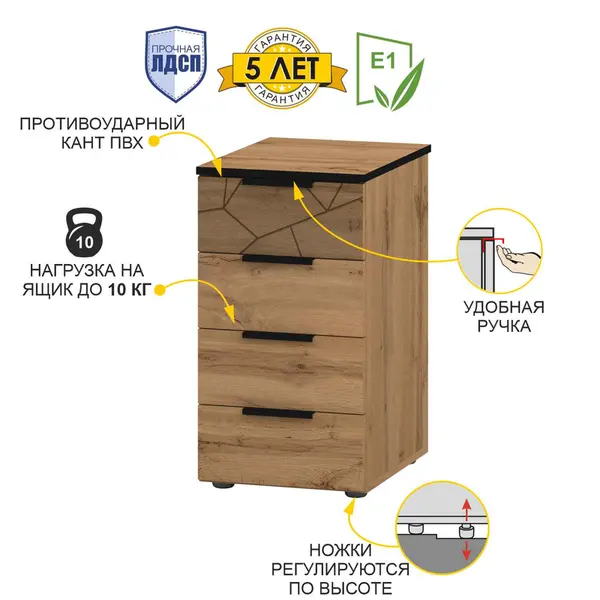 • Мы позаботились, чтобы сборка тумбы с четырьмя ящиками была максимально простой, и создали понятную инструкцию, которая идет в комплекте.