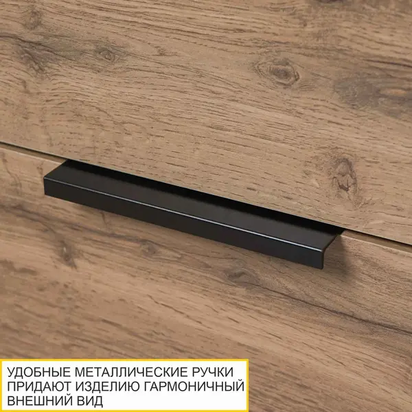 • Удобные металлические ручки обеспечивают легкое открывание, а их лаконичный дизайн гармонично завершает внешний вид тумбы.