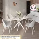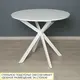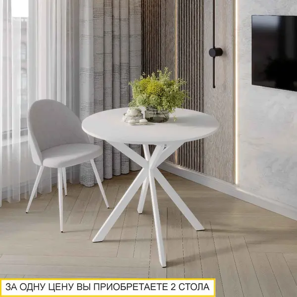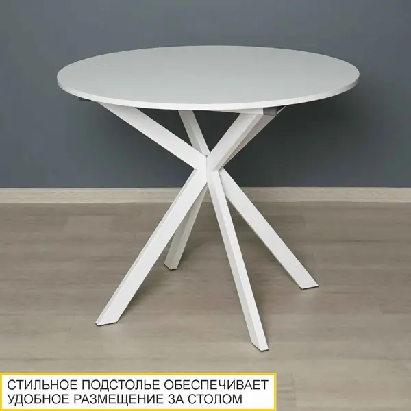 Белый цвет стола в сочетании с белыми металлическими опорами можно комбинировать с любыми другими цветами и фактурами. В то же время такой стол добавляет интерьеру свежести и визуально расширяет пространство.