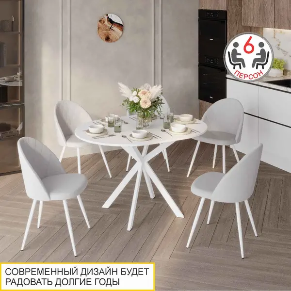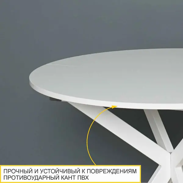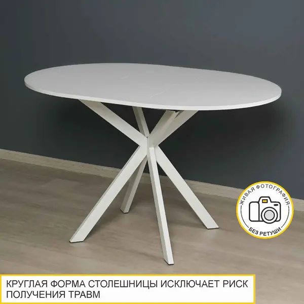 • Компактный круглый стол диаметром 90 см благодаря надежному механизму «Синхронное раздвижение и вставка-бабочка» трансформируется во вместительный овальный стол с размером столешницы 120 см.