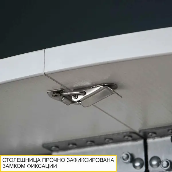 • Замок для фиксации столешницы придает жесткость конструкции как в собранном, так и в разложенном виде. Позволяет надежно зафиксировать столешницу во время эксплуатации стола.