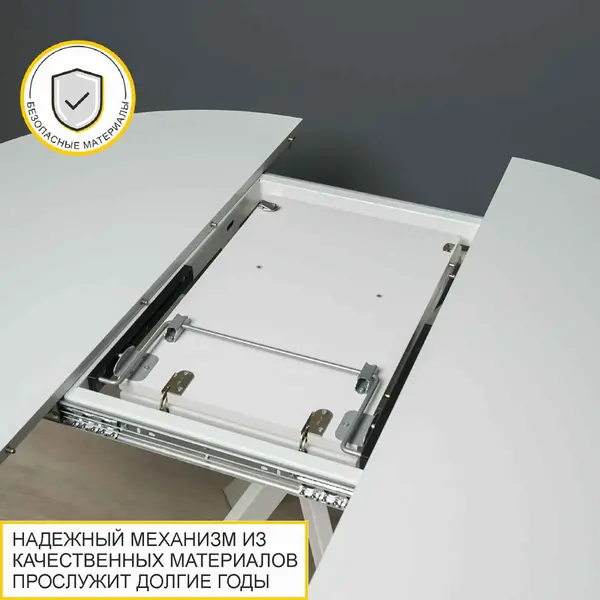 • Раскладной механизм увеличивает длину столешницы, что позволяет разместить за столом большое количество гостей.
