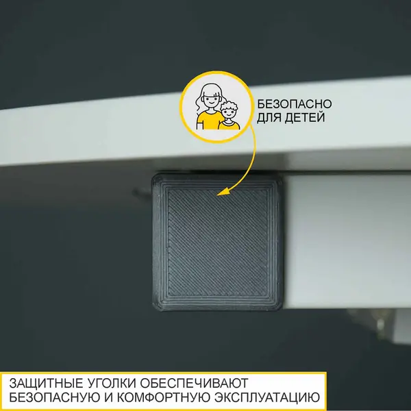 • Механизм трансформации укомплектован защитными уголками скругленной формы, которые уберегают от травм и обеспечивают безопасную и комфортную эксплуатацию стола.