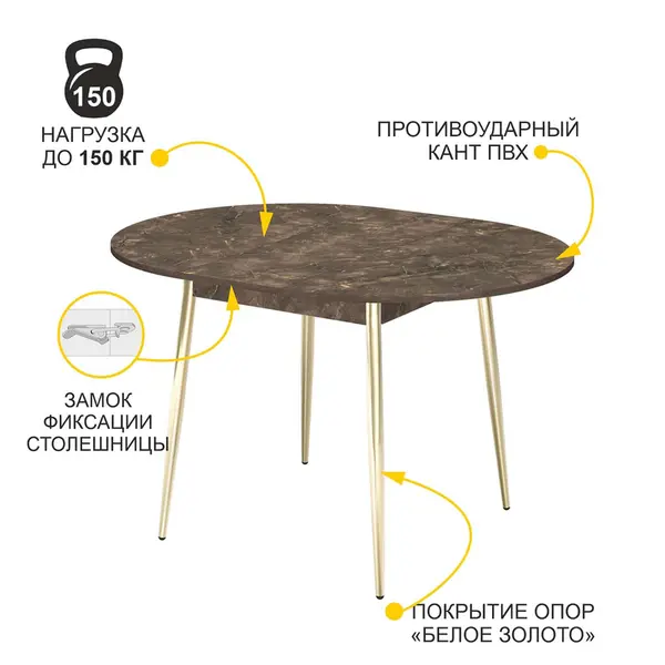 • Равномерно распределенная нагрузка на стол на кухню раздвижной в сложенном и разложенном виде - до 150 кг.