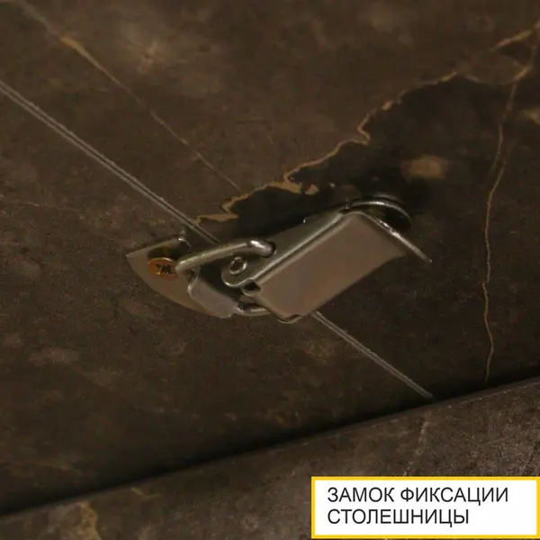 • Замок для фиксации столешницы придает жесткость конструкции как в собранном, так и в разложенном виде. Позволяет надежно зафиксировать столешницу во время эксплуатации обеденного стола.