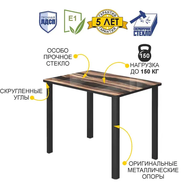 • Стол на кухню устойчив к равномерно распределенной нагрузке до 150 кг, что делает его прочным и надежным.