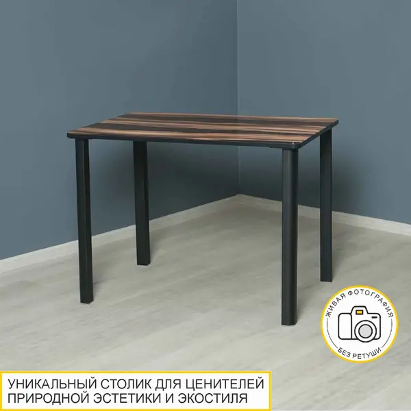 Стол кухонный, выдержанный в природной цветовой гамме, создает ощущение спокойствия и уюта. Глубокий оттенок ночной реки на столешнице придает интерьеру изысканность и особый шик. Уникальный дизайн столика в стиле лофт дополняют лаконичные опоры.