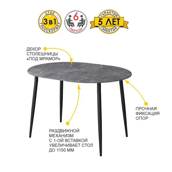 • Благодаря современному дизайну обеденный стол впишется в любой интерьер. Это отличное решение для тех, кто хочет идти в ногу со временем.