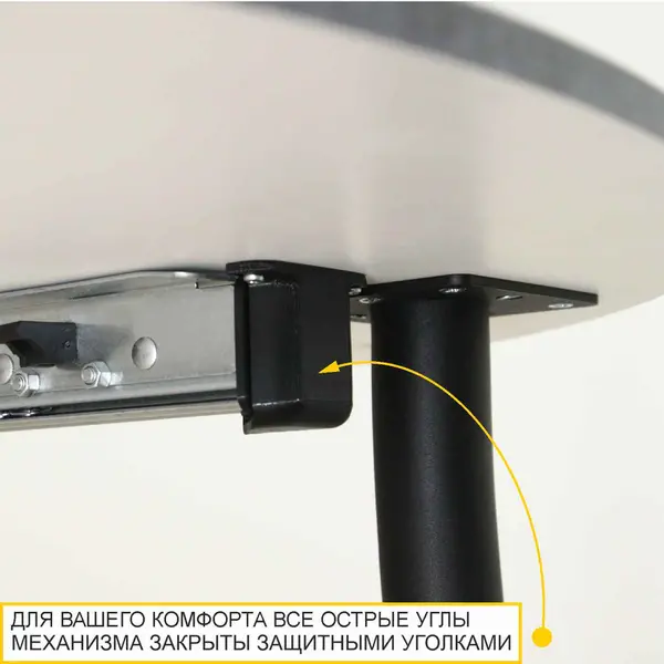 • Механизм трансформации укомплектован защитными уголками скругленной формы, которые уберегают от травм и обеспечивают безопасную и комфортную эксплуатацию стола.
