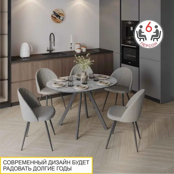 Благодаря современному дизайну обеденный стол впишется в любой интерьер. Отличное решение для тех, кто хочет идти в ногу со временем. Имитация натуральной древесной текстуры создает ощущение уюта.