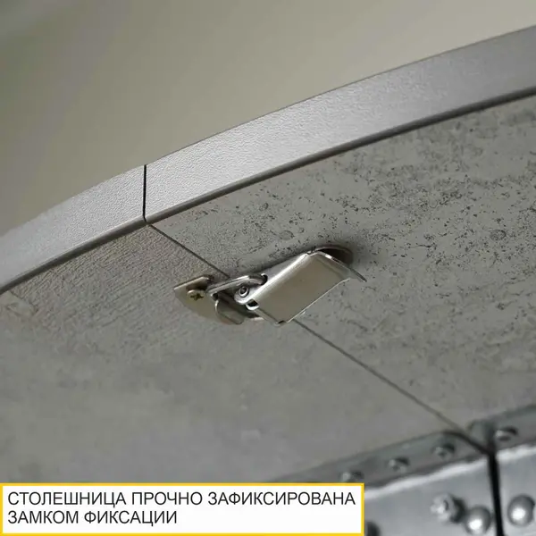 • Замок для фиксации столешницы придает жесткость конструкции как в собранном, так и в разложенном виде. Позволяет надежно зафиксировать столешницу во время эксплуатации стола кухонного раздвижного.