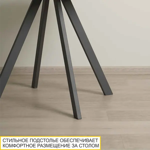 • Стильное подстолье подчеркивает современный дизайн стола. Его оригинальная форма обеспечивает надежность и устойчивость конструкции, а также комфортное размещение за столом.