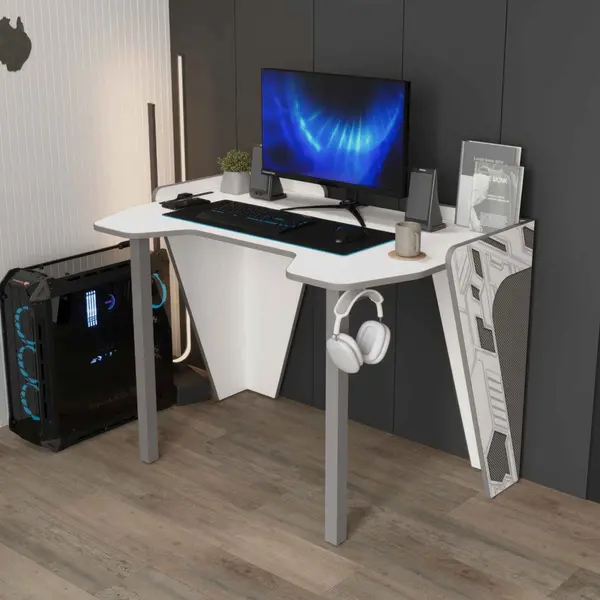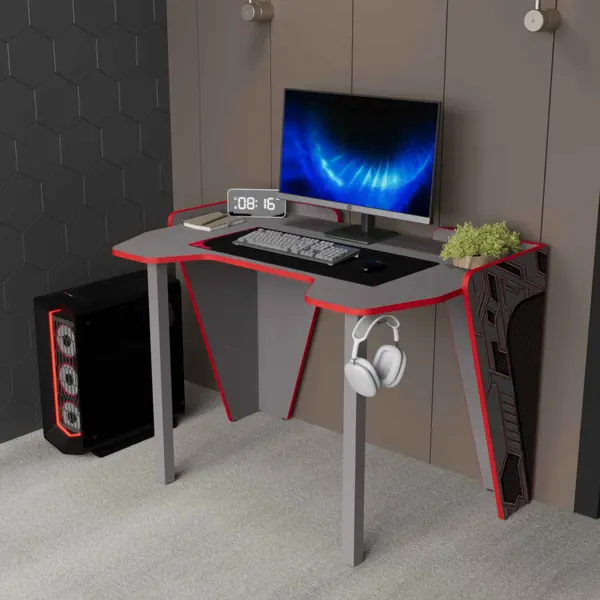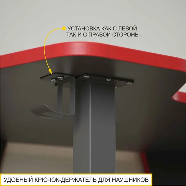 • Мы все предусмотрели, поэтому в комплекте к геймерскому столу идет крючок-держатель для наушников. Наушники всегда под рукой и при этом не мешают и не занимают много места на столе.