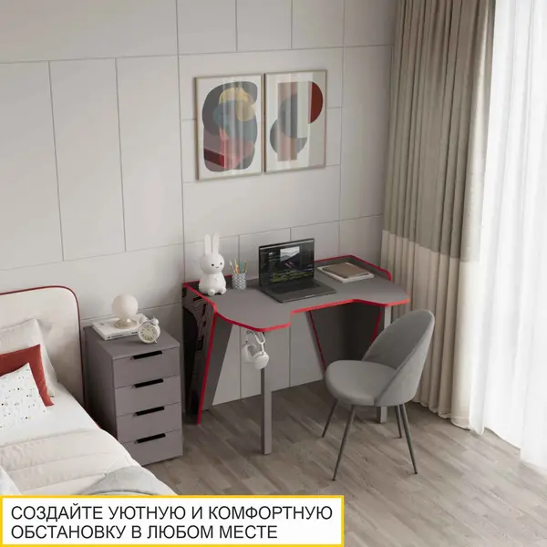 • На просторной рабочей поверхности можно комфортно разместить как компьютерное оборудование, так и канцелярские принадлежности. Удобное рабочее пространство обеспечивает комфорт и эффективность в процессе работы, учебы или игр.