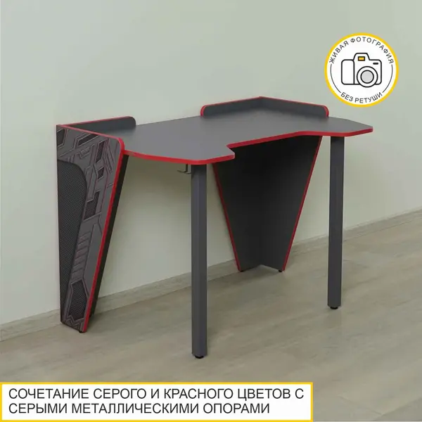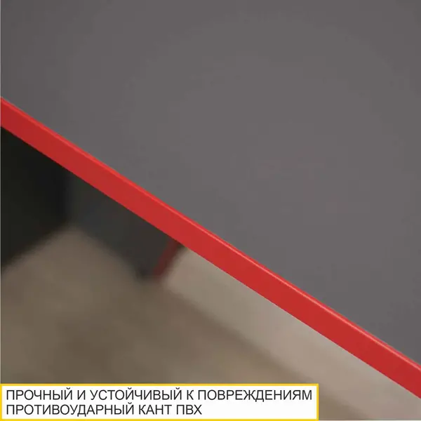 Стол выполнен в базовом сером цвете. Он прекрасно сочетается с различными оттенками и может быть с успехом применен в разнообразных стилевых решениях. А противоударный кант ПВХ красного цвета станет ярким акцентом в интерьере.