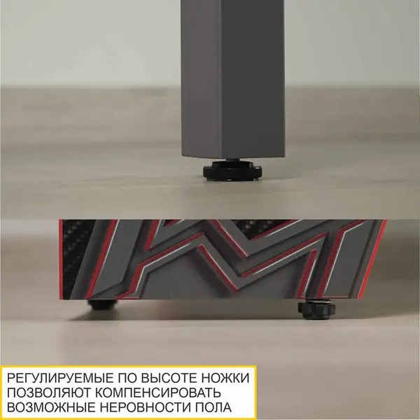 • Прочные металлические опоры обеспечивают устойчивость и надежность геймерского стола, делая его идеальным выбором для интенсивных игровых сессий.