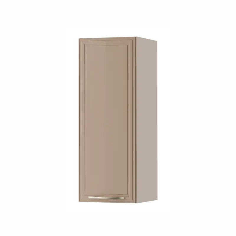 • Мягкий кофейный оттенок «Мокко» создает атмосферу спокойствия и уюта. Глянцевая поверхность фасадов с оригинальной рамкой поддерживает современный стиль.