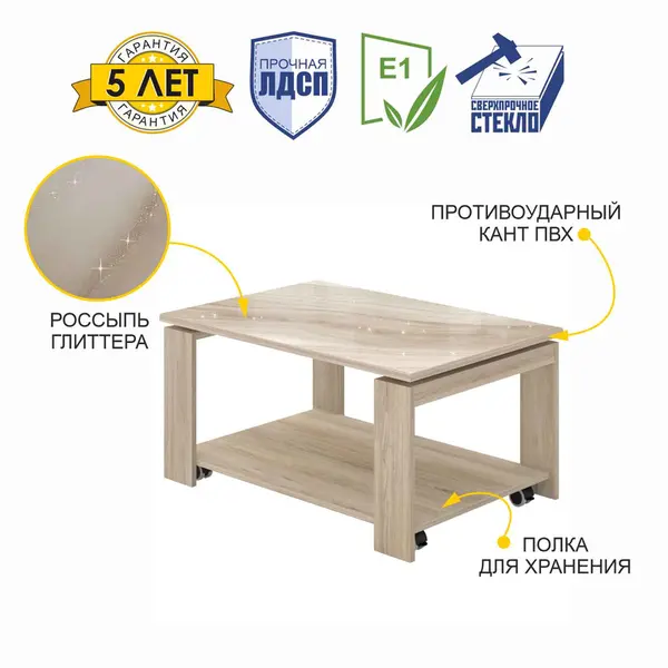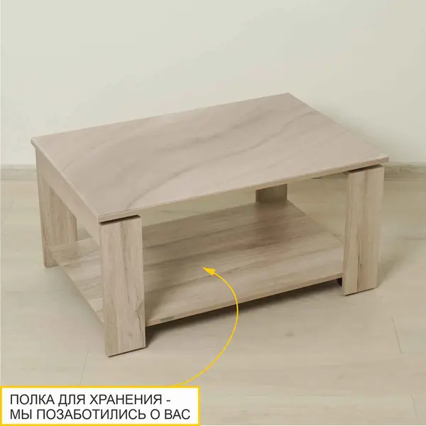 • Журнальный стол выдерживает нагрузку до 80 кг, на полку - до 25 кг. Это прочнее большинства продаваемых журнальных столов.