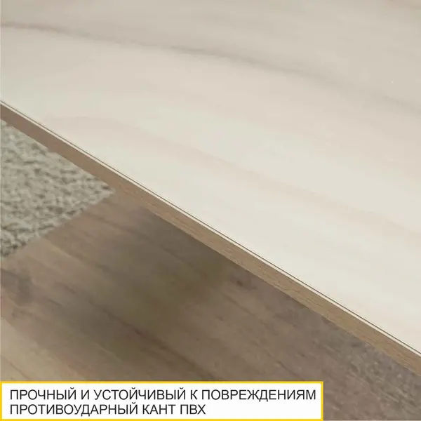• Противоударный кант ПВХ 0,4 мм и 2 мм защищает края изделия от сколов и влаги, увеличивает срок эксплуатации изделия и сохраняет его внешний вид на долгие годы.