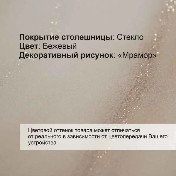 • Россыпь глиттера придает утонченное мерцание дизайнерскому рисунку на столешнице, подчеркивает уникальность изделия и привлекает внимание.